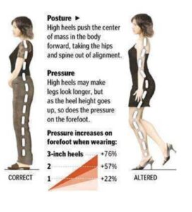 High heels or shoes with inadequate support can affect your posture, put strain on your spine and lead to back pain.